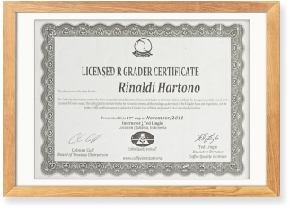 Is one of the few of certified Q Robusta Grader in Indonesia since 2011 and has always been re-certified every 3 years.